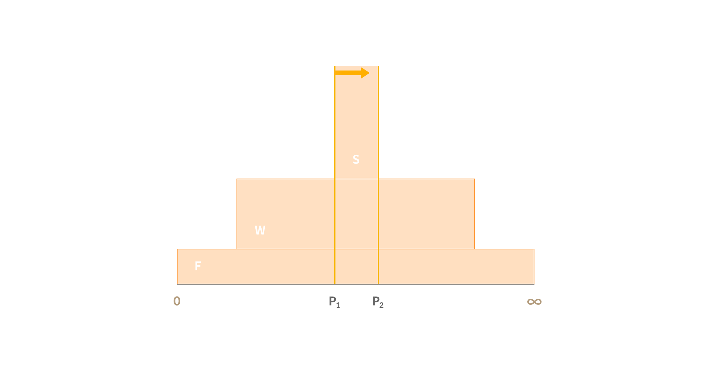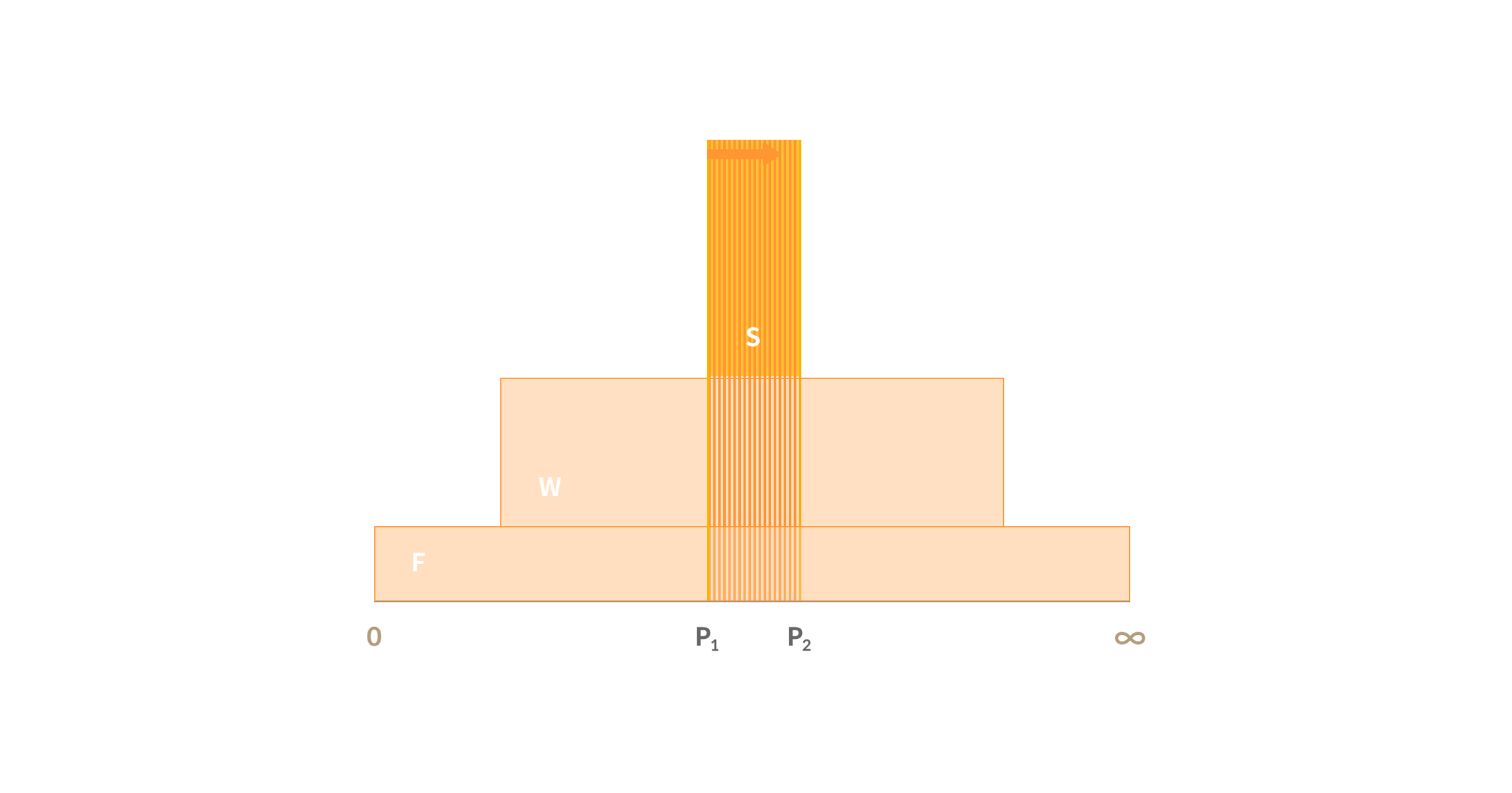 Assuming the trade volume is between the P1 and P2 range and the liquidity size (Spot, Wide, Full range) of each price range is as follows, the expected return will be calculated as follows.