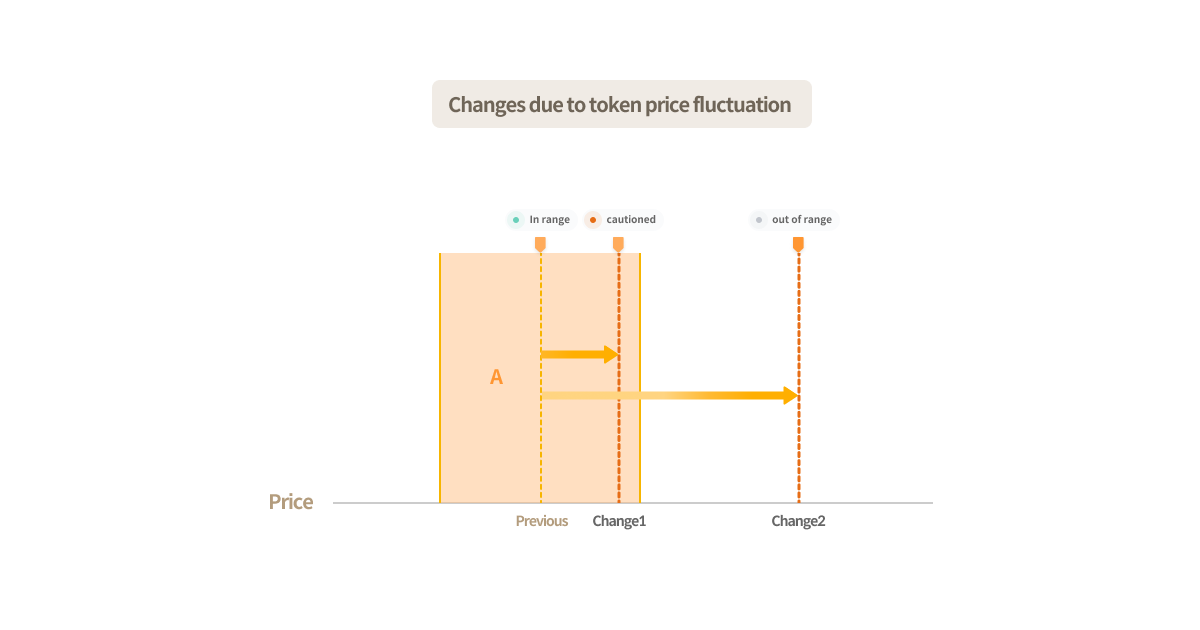*Case 2: If the token price changes to the Change1 state, transactions continue to occur in liquidity pool A, but the price might fall out of range and may turn into an inactive state.