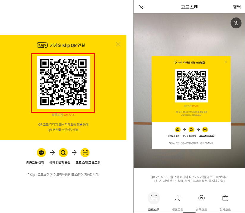 8. [승인하기] 버튼 클릭 후 카카오톡 앱을 실행하여 화면에 표시된 QR 코드를 스캔합니다.