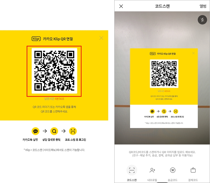 4. [출금하기] 버튼 클릭 후 카카오톡 앱을 실행하여 화면에 표시된 QR 코드를 스캔합니다.