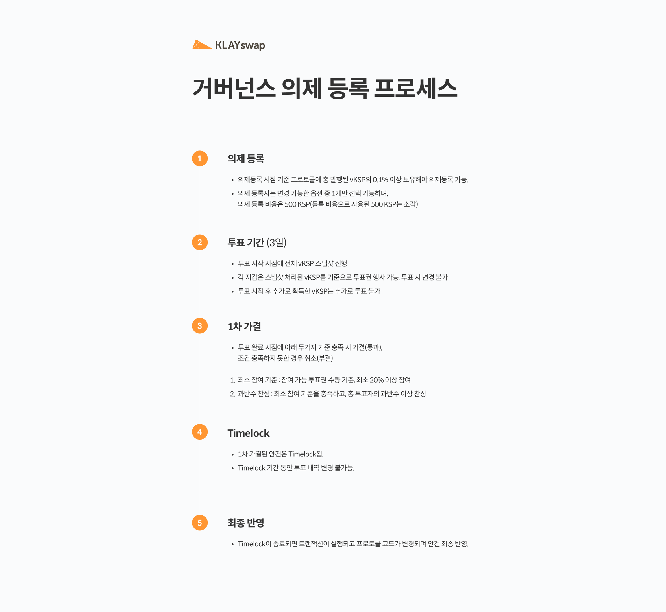 KLAYswap 거버넌스 투표 등록과 실행 순서는 다음과 같습니다.