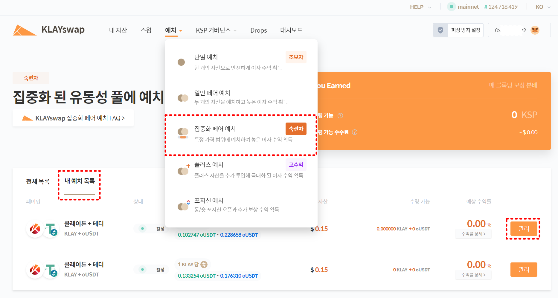 1. V3 풀 목록 페이지에서 회수하려는 풀의 [관리] 버튼을 클릭합니다.