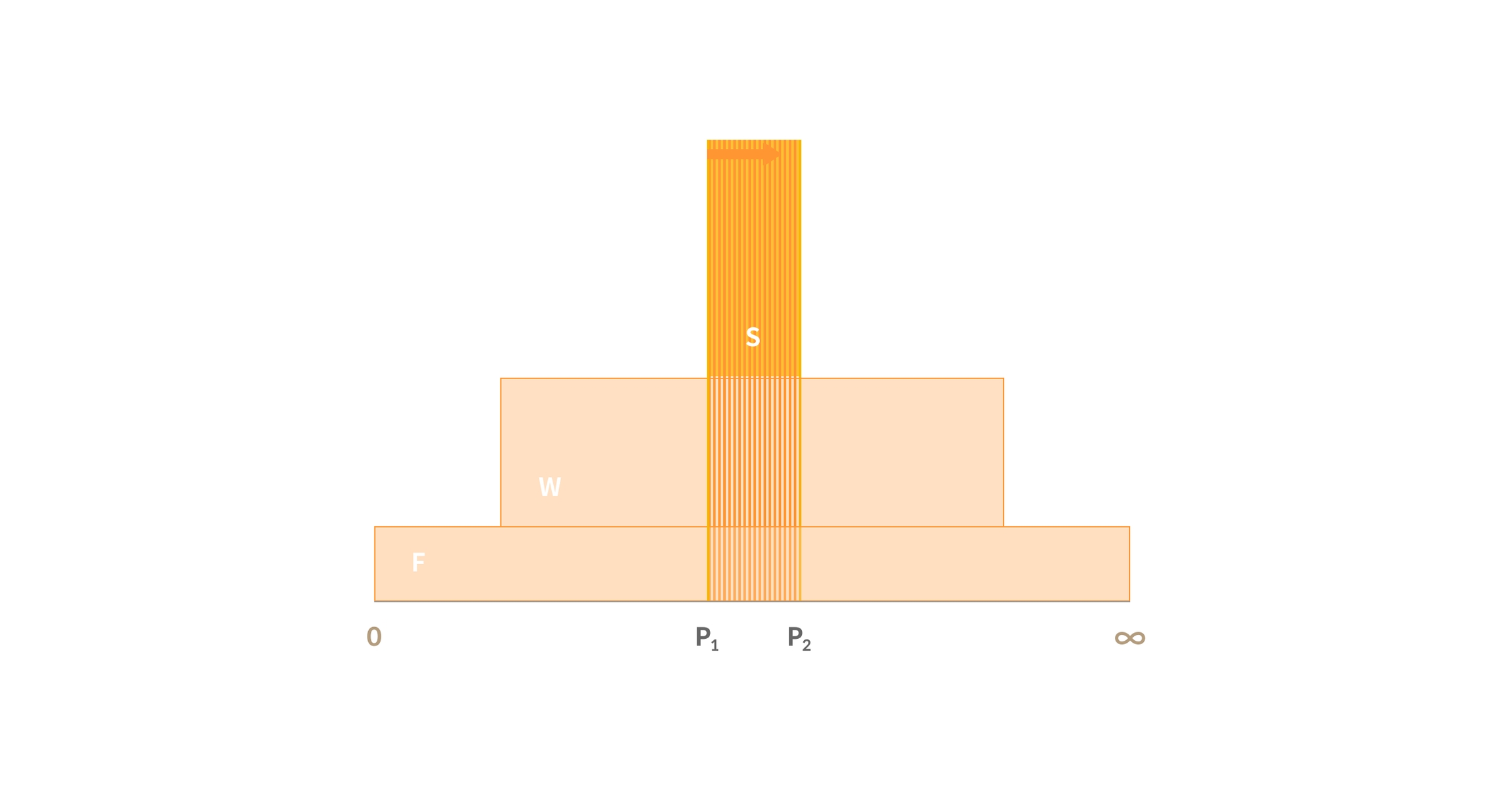 풀에서 거래가 발생하여 토큰 가격이 P0 > P2로 변경되었다면, P0~P1구간에서는 사용자 A의 자산이 사용되지 않고, P1~P2 구간에서 사용자 A의 유동성이 거래에 사용됩니다. P1~P2 구간에서 활성화된 거래 유동성 내 사용자 A의 지분율은 (사용자의 유동성(A)/활성화 된 유동성(T)) 입니다.